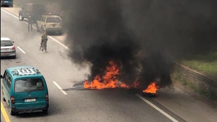 أقدم عدد من المحتجين على إشعال الاطارات على المسلك الغربي لاوتوستراد...